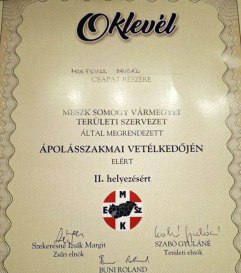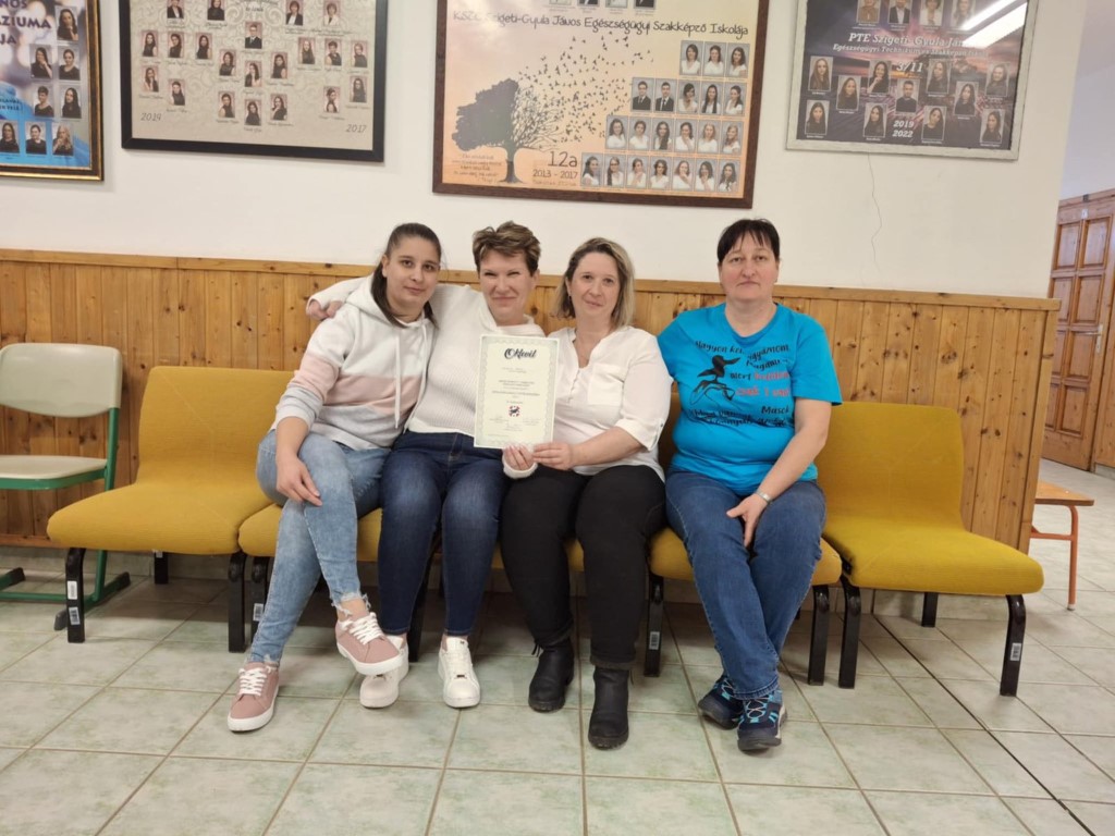 2025.03.03. MESZK ápolásszakmai verseny eredmény A MESZK ápolásszakmai versenyén intézményünk „Morfeusz brigád” csapata (tagjai: Tomborné Szigeti Rita, Boldoghné Herbel Zsuzsanna, Bogdán Renáta, Kissné Horváth Hajnalka) II. helyezést ért el. Gratulálunk a csapattagoknak!